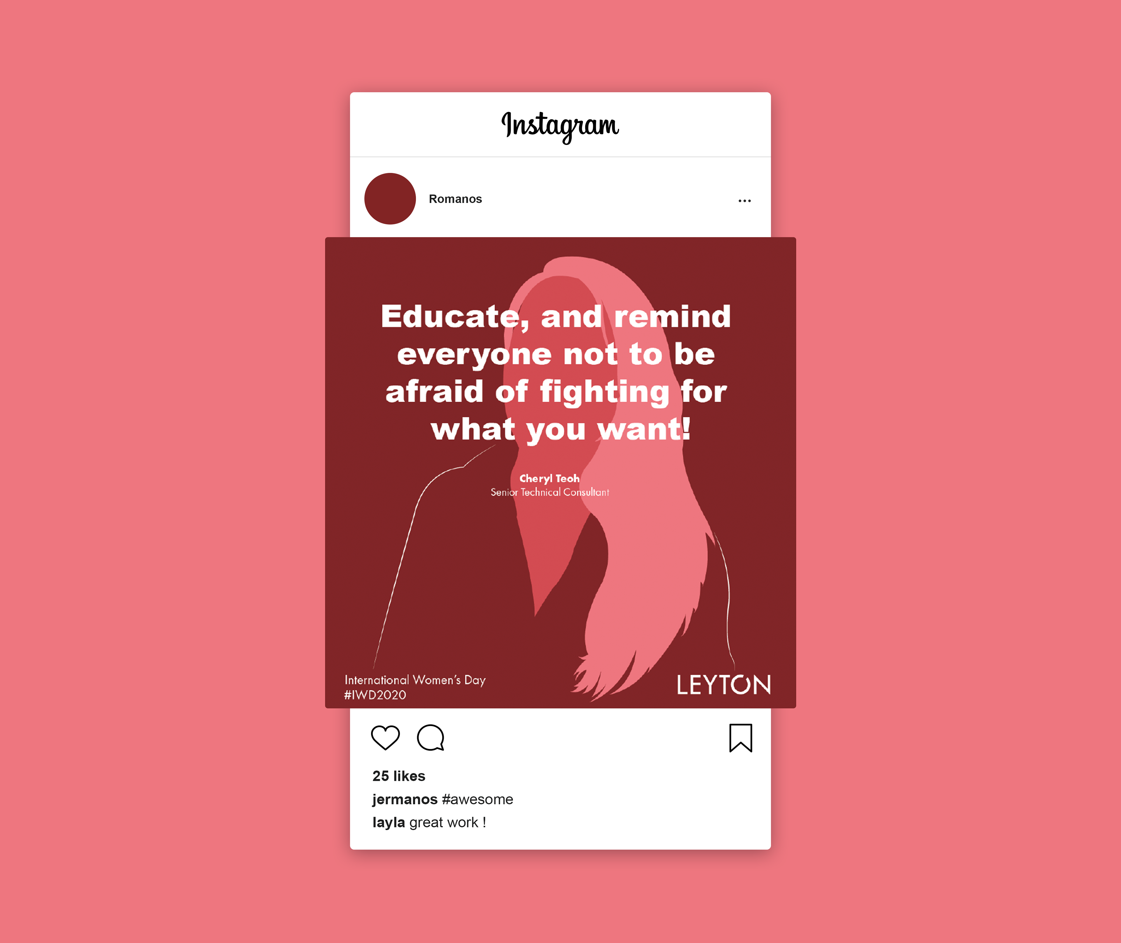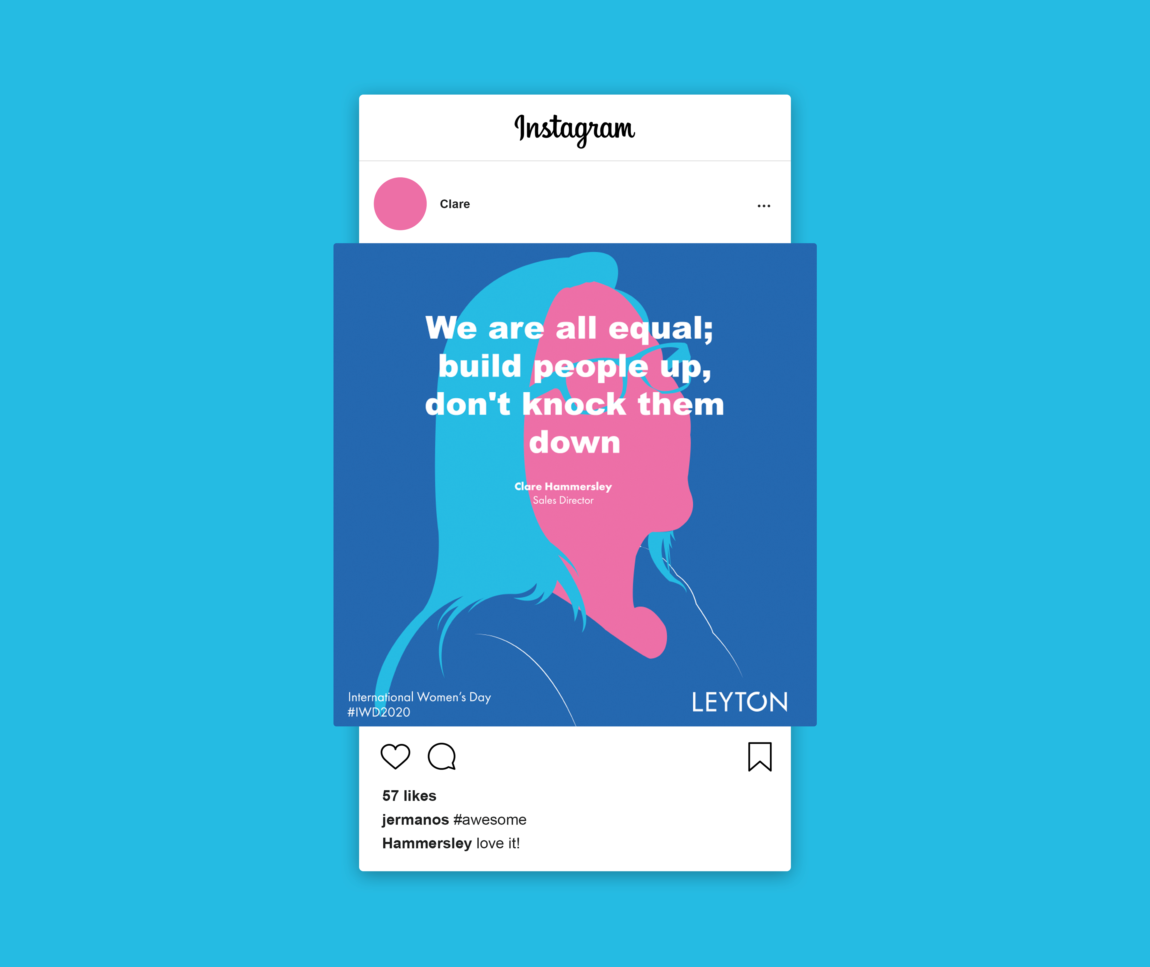 A social campaign created to celebrate International Women’s Day, designed to highlight key messaging in a bold yet professional format aligned with Leyton’s brand.