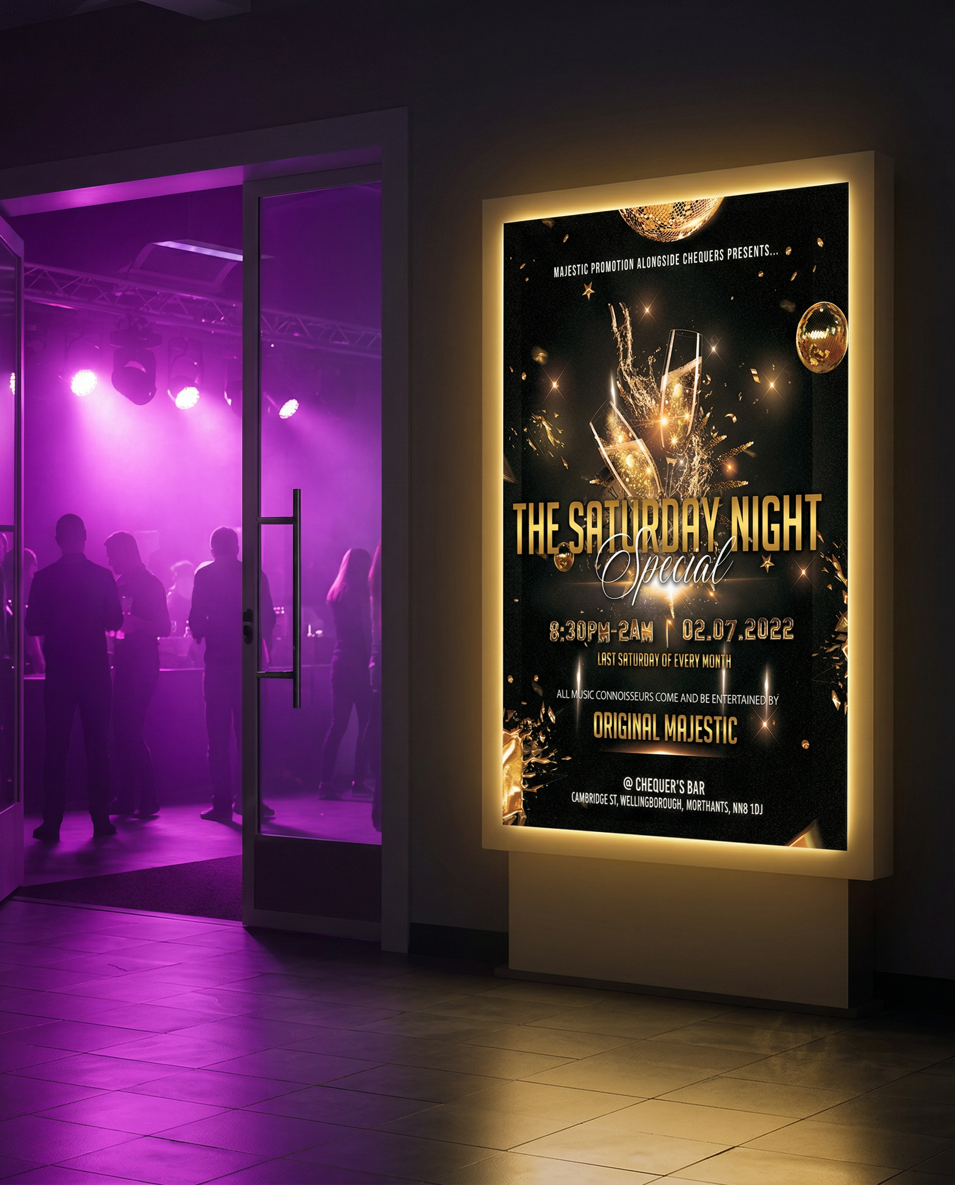 This series of flyers was created for K.S Promotion, a brand known for hosting stylish, high-energy events tailored to a mature audience.